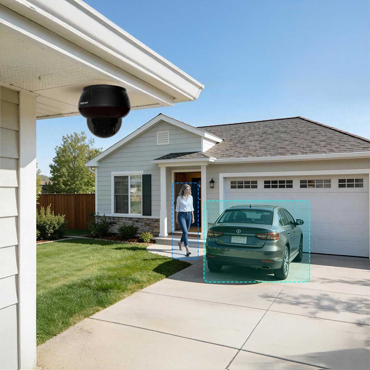 Integrovaná detekcia osôb a vozidiel s umelou inteligenciou spoľahlivo rozlišuje medzi ľuďmi, vozidlami a irelevantnými pohybmi. Alarmy sa spúšťajú prostredníctvom e-mailu, FTP alebo aplikácie Foscam. Falošné poplachy spôsobené zvieratami alebo faktormi prostredia sú výrazne znížené.